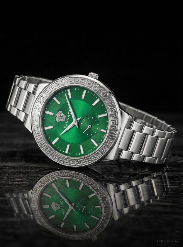 Canlı yeşil kadranı ve ikonik detaylarıyla fark yaratan bu model, modanın kalbinden gelen cesur bir duruş sergiliyor. Çerçeveyi saran klasik Greca deseni ve efsanevi Medusa logosu, markanın eşsiz mirasını lüks bir yorumla bileğinize taşıyor. Hem modern hem de iddialı tarzıyla, stilinize çarpıcı ve unutulmaz bir imza atmak için özenle tasarlandı.